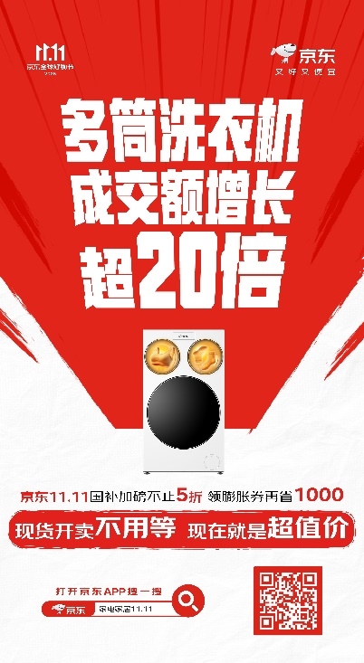 家电家居家装消费升级趋势显著,高端化、智能化产品受青睐。其中,多筒洗衣机成交额同比增长超20倍,展现出消费者对高品质生活的追求。现在下单购买家电好物,还可享受国补加磅不止5折、领膨胀券再省1000元等重磅优惠。