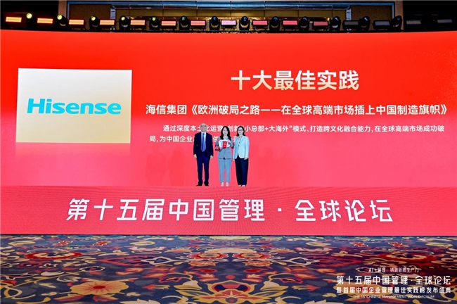 作为全球首个聚焦管理场景的榜单,“中国企业管理最佳实践榜”重点关注AI时代下企业面临的核心管理难题。以企业管理具体场景为切入点,深度挖掘兼具创新性与借鉴意义的实践案例,为行业提供可参考、能落地的中国特色管理解决方案。海信集团控股股份有限公司(以下简称“海信”)通过深度本土化运营、创新“小总部+大海外”模式、打造跨文化融合能力,在全球高端市场成功破局,为中国企业出海提供成熟范式,成功获得2025年度中国企业管理最佳实践榜“十大最佳实践”。
