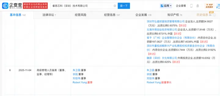 芯片圈最近风声不断。企查查最新信息显示,深圳市重大产业投资集团(深重投)已通过旗下基金低调入股RISC-V企业睿思芯科,引发业内关注。同时出现在股东名单中的还有华胥基金旗下胥予基金,进一步丰富了资本背景。